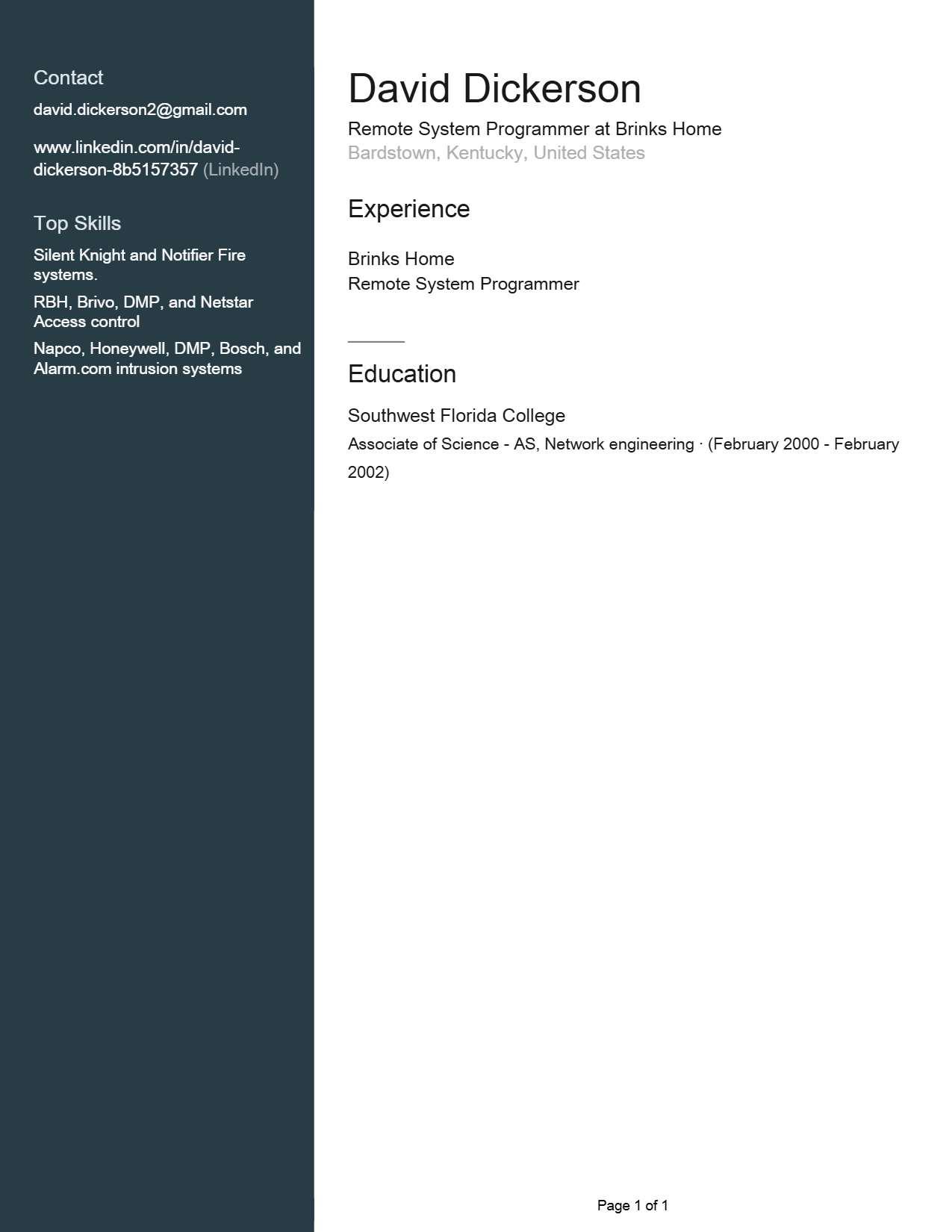 Remote System Programmer and field technician, offering 11 years of security and network system experience with attentive customer service. Reviewing ... View More