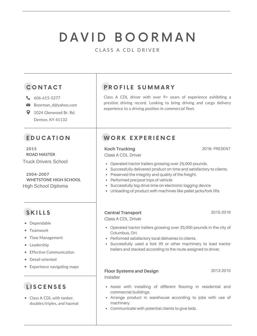 Class A CDL driver with over 9+ years of experience exhibiting a prestige driving record. Organized with proven track record of delivering within spec... View More