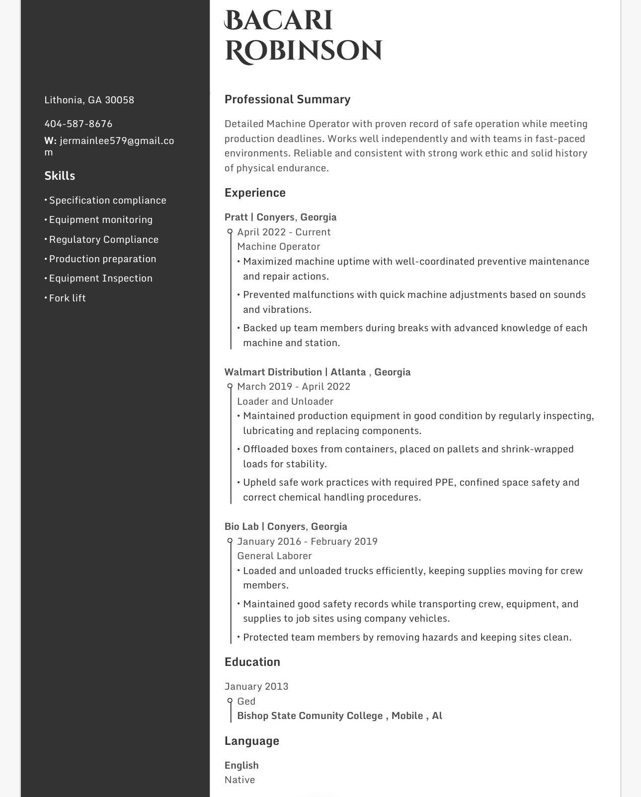 Skilled Production Worker offering over 10 years of experience in warehouse and manufacturing environments. Focused on being productive and safety-min... View More