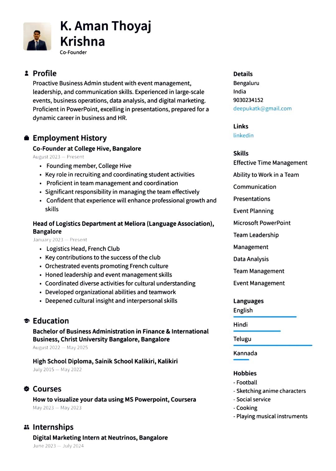 Proactive HR enthusiast aiming to build a successful career in Human Resources. Skilled communicator and stress-handler with an entrepreneurial mindse... View More